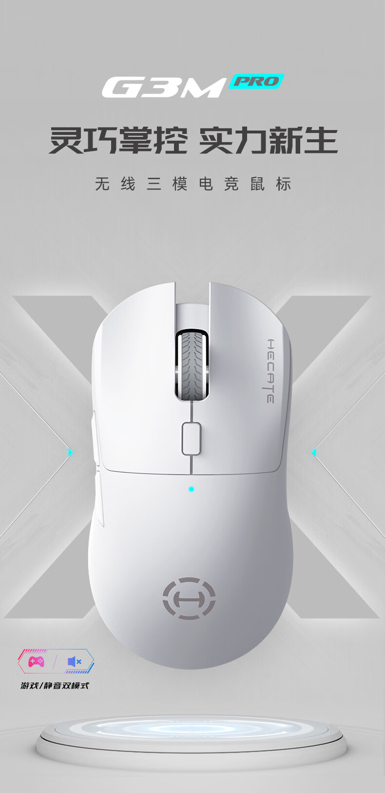商品名稱:漫步者HECATE G3Mpro無線游戲鼠標 有線藍牙三模電競鼠標 辦公靜音鼠標3395輕量化設計 白色+定制防滑貼