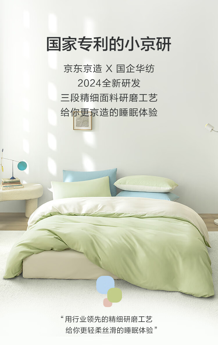 京東京造小京研三件套 100g輕柔夏季A類床單被套床上三件套 1.2米床 芽綠
