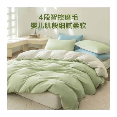 商品名稱:京東京造小京研三件套 100g輕柔夏季A類床單被套床上三件套 1.2米床 芽綠
