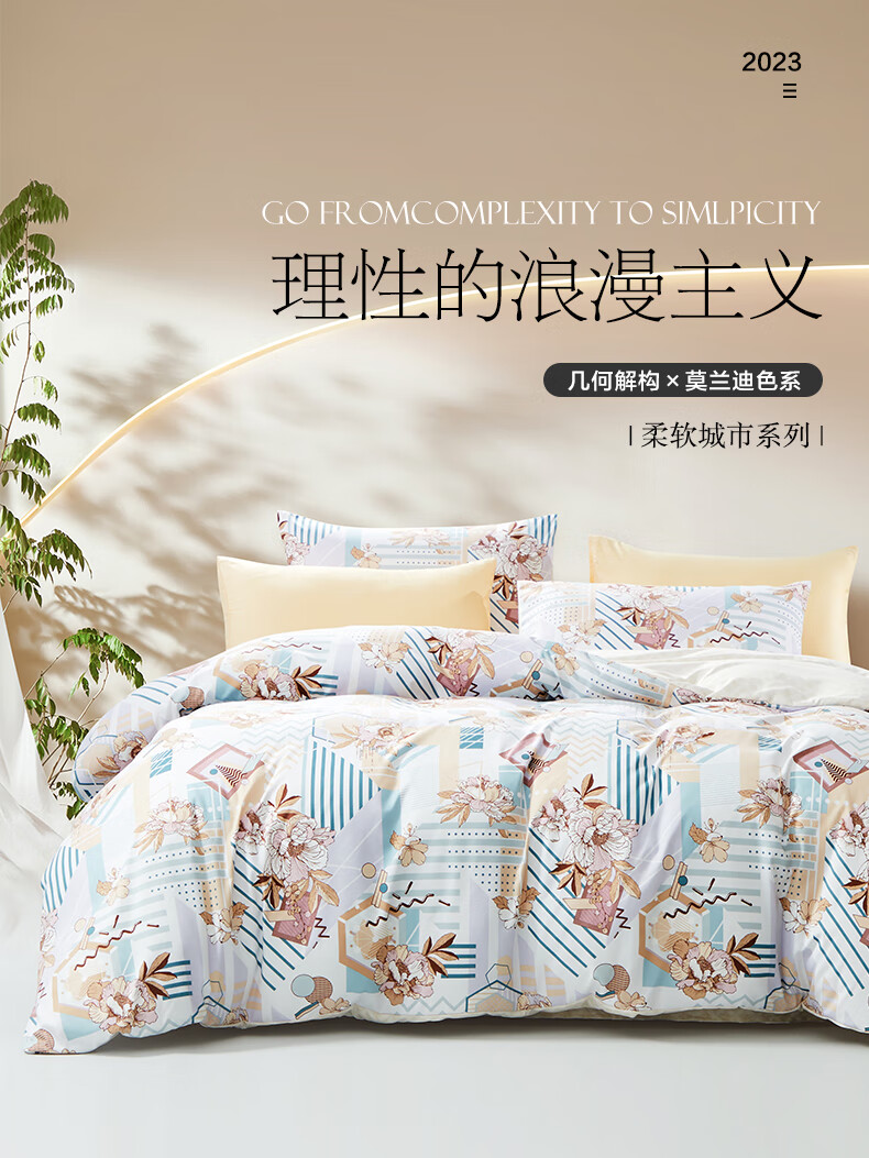 富安娜 圣之花床上四件套床單被套學生宿舍磨毛套件被罩枕套床上用品 (富安娜)錦.韶影 1.5m(5英尺)床-四件套